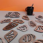 Kleine onderzetters voor bekers en meer Onderzetters van kersenhout. Met vormen gebaseerd op water, want waarom moeten onderzetters rond of vierkant zijn? En doen de vormen niet ook aan stenen denken?